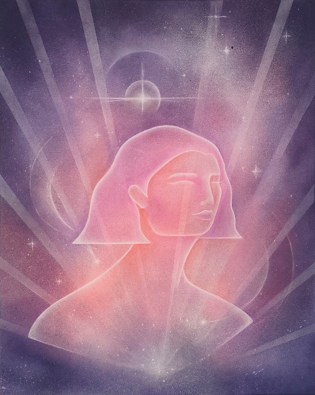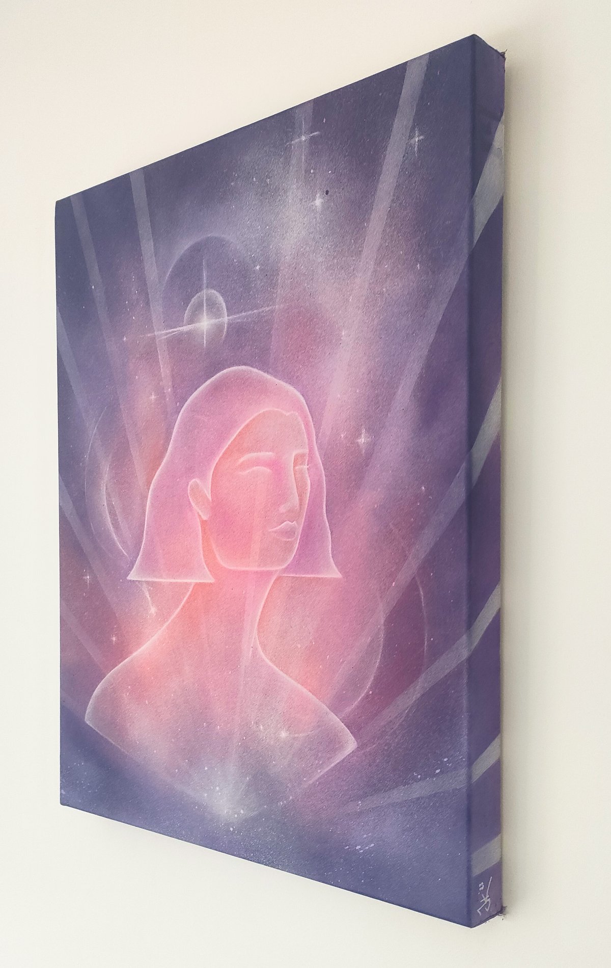• Aerosol, acrylic paints and pastel pencil on canvas • 405 x 510 mm • Unframed deep edge canvas (35mm) • Ready to hang